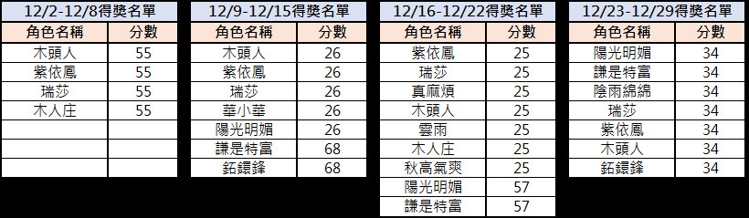 3. 活動獎勵將於12/3(五)18:00前發送至帳號內。