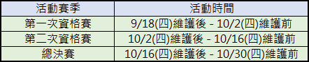【活動時間】9/18(四)維護後 – 10/30(四)維護前