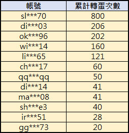 活動期間內,玩家於遊戲商城內累積購買「轉蛋」即可獲得轉蛋次數,