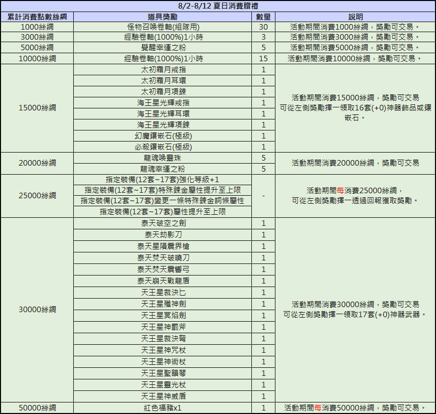 1.此活動可與道具【黃金時間獎勵/黃金經驗時間/白銀經驗時間】、【經驗提升卷軸】效果累加。