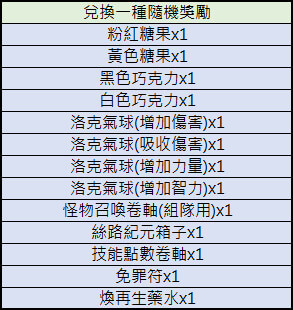★使用後隨機獲得一種內容物(如下表),道具皆為可交易性質,請依照官方網站公布資訊為準。