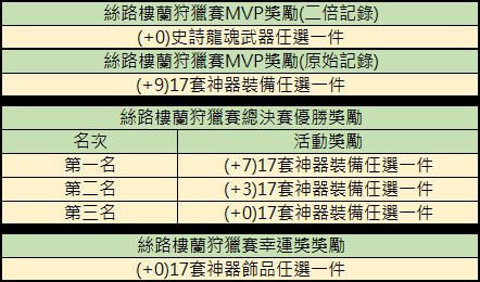 🏆狩獵賽優勝:在狩獵賽期間獲得最多的經驗即為優勝(區間階段+決賽階段的經驗總合)