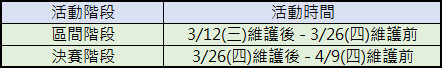 【活動時間】3/12(四)維護後 – 4/9(四)維護前