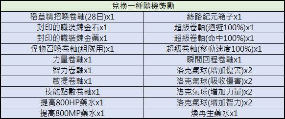 1.此活動可與道具【黃金時間獎勵/黃金經驗時間/白銀經驗時間】、【經驗提升卷軸】效果累加。