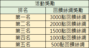活動總分數排名前5名的玩家即可於活動結束後獲得回饋絲綢排行獎勵。